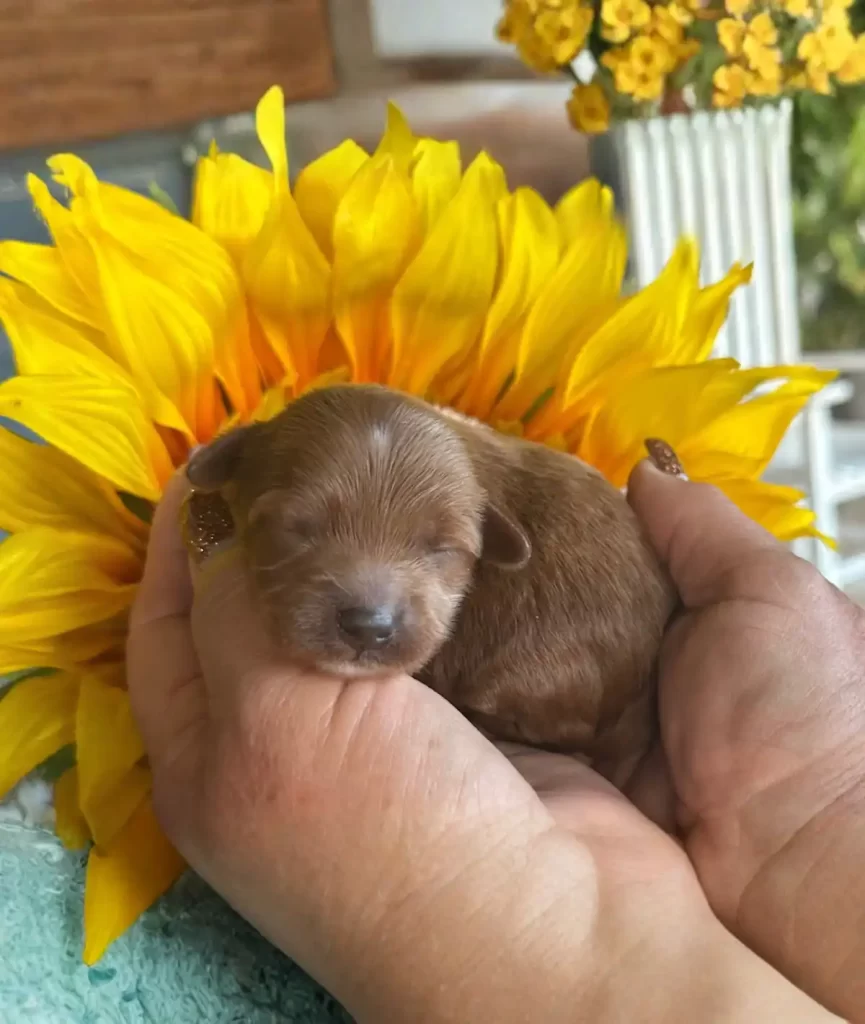 Charlie is a handsome Red Male Toy Maltipoo with an outgoing personality and loving heart. He’s hypoallergenic, non-shedding, and will make a loyal and fun companion!