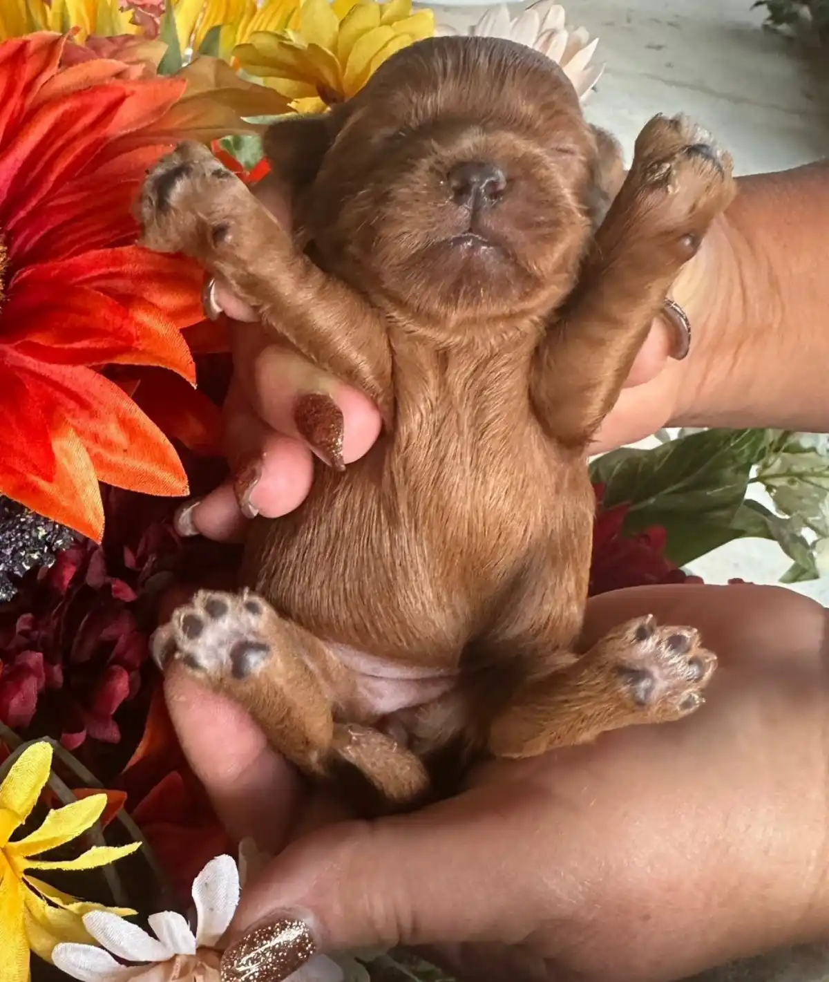 Daisy is a gorgeous Red Female Toy Maltipoo with a soft, hypoallergenic, non-shedding coat. She’s affectionate, playful, and full of personality — the perfect little companion for any loving home!