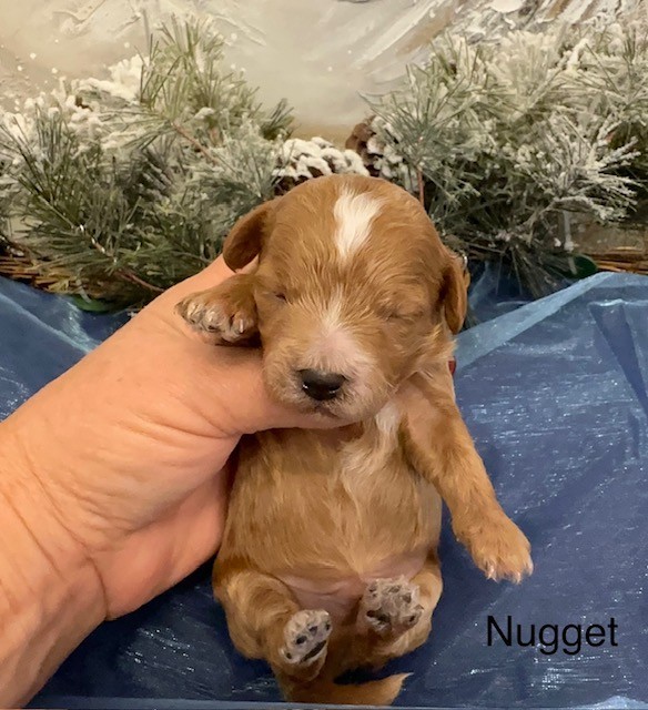 Mom is a 9 lb Apricot Maltipoo. Dad is a 4 lb Red Poodle.  Nugget will be socialized, playful, up to date on shots and dewormings.