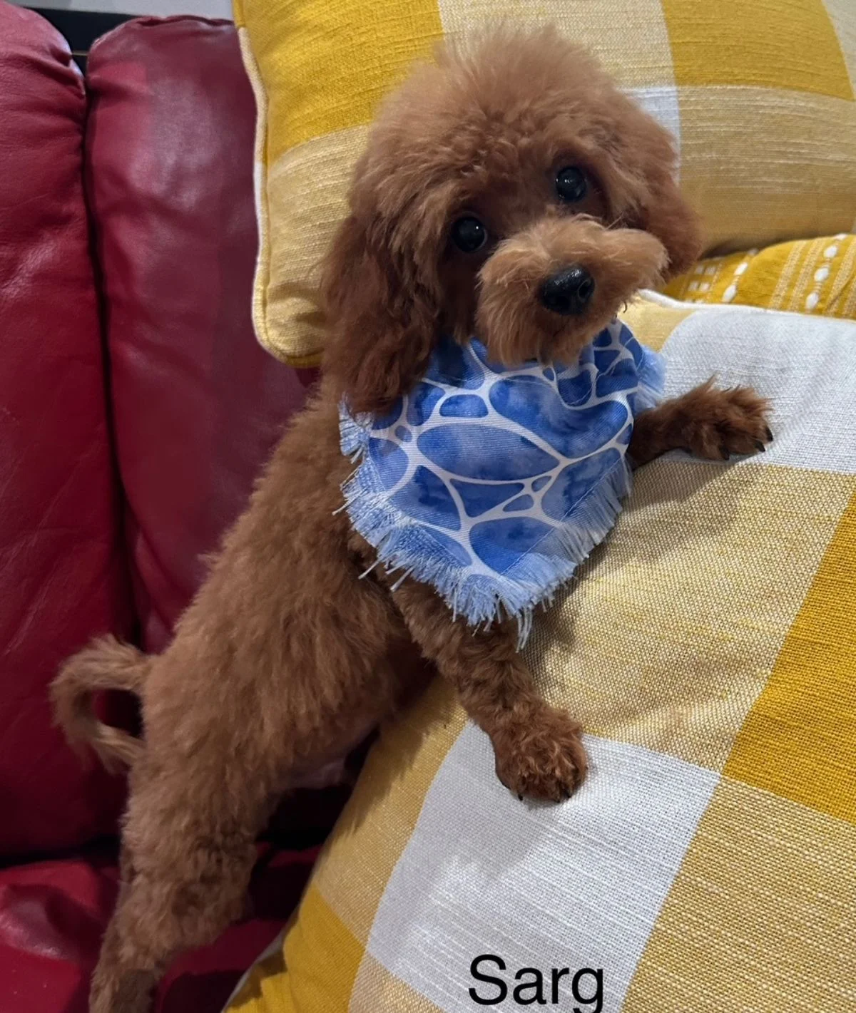 Sarg is a lovable male Maltipoo with a bold spirit and cuddly charm. His soft, non-shedding coat and friendly personality make him the perfect companion for any family.